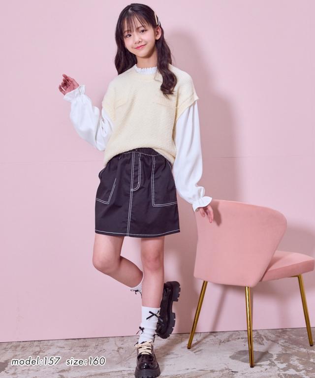 スカッツ 子供服 キッズ ステッチ配色 スカート 女の子 ボトムス スカート付きパンツ レギンス ガールズ 身長130cm ニッセン nissen