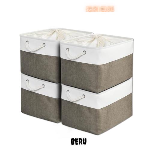 MiyabiLife 収納ボックス 収納バスケット 収納かご 4個セット 幅40×奥行30×高さ24cm 巾着式ふた付き 折りたたみ 大容量 収納ケース お