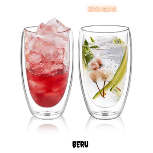 QuiExact ダブルウォールグラス 450ml 2個セット 保冷 保温 耐熱 二重 グラス ダブルウォール コップ 結露しないグラス 二重グラス アイ