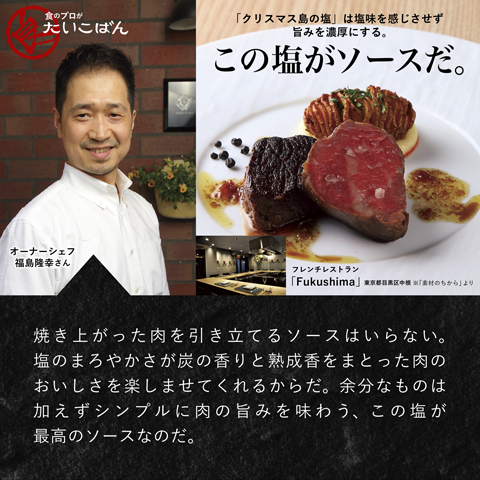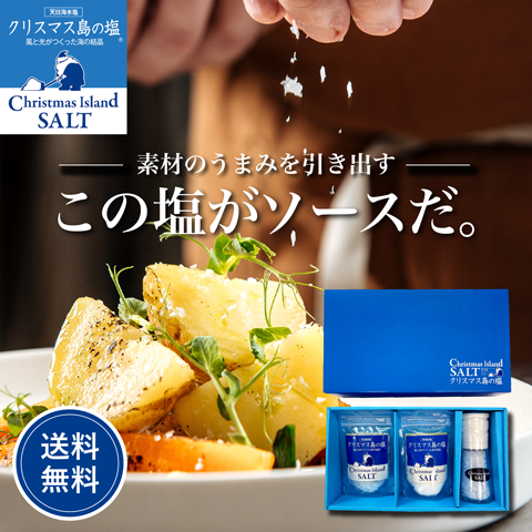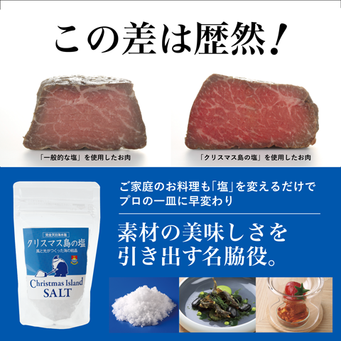 料理のレベルをワンランクと言わず何段階も高める・食材のポテンシャルを最大限に引き出す天日海水塩 クリスマス島の塩をぜひご賞味ください。