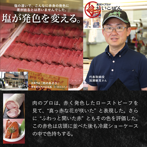 海水が自然に結晶化した塩は浸透率が早いので食材の美味しさを前面に引き出します。