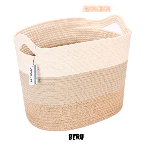Sea Team 大きいサイズ 収納バスケット 収納かご 洗濯かご ランドリーバスケット ロープバスケット コットンロープバスケット 持ち手付き