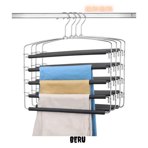【省スペースズボンハンガー】1本のハンガーで五つのズボンを収納でき、スーペス利用率が80%にアップされます。クローゼットが混雑しなくなります。
