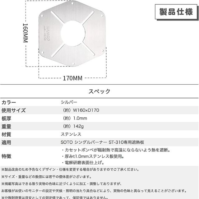 | 適用 | SOTO ソト レギュレーターストーブ ST-310 用 遮熱板 ※ primus(プリムス) 173フォールディングハイパワーバーナー P-173にも取り付けて使用可能 |