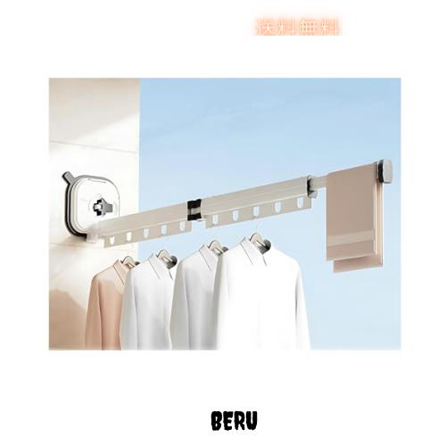 BESSTER洗濯物干し室内 吸盤式 壁付け折りたたみ物干しラック 部屋干しウォールハンガー 穴あけ不要 伸縮物干しポール 室内壁掛け バスル