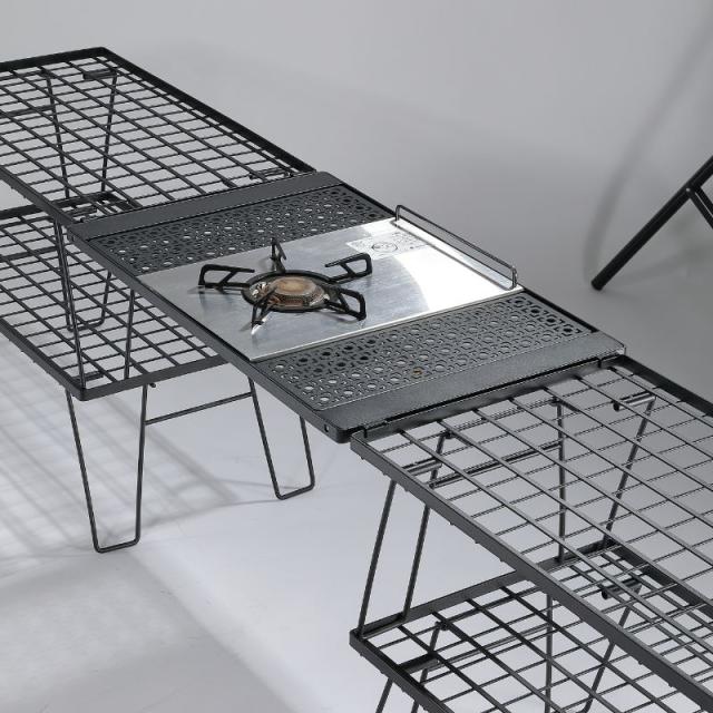 | 特徴 | ・アウトドアシーンでタフに活用できるスチール素材、高温の鍋ややかんなどを直接置くことができます。 ・シェルフコンテナ、フィールドラック及びブリッジテーブル同士の連結に使用可能 |