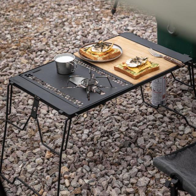 | 特徴 | ・アウトドアシーンでタフに活用できるスチール素材、高温の鍋ややかんなどを直接置くことができます。 ・シェルフコンテナ、フィールドラック及びブリッジテーブル同士の連結に使用可能 |