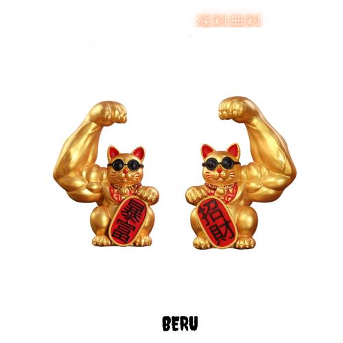 置物 開運 招福 招き猫 金運祈願?手のひらサイズ 開店祝い 新築祝い プレゼント (暴富招き猫+左手招き猫)