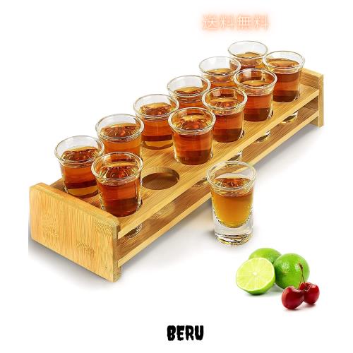 ◆商品名:ショットグラスセット 12個 - 35ml と棚 クリアグラス、ヘビーベース、ウイスキーグラスセット、ウォッカテキーラ、カクテル