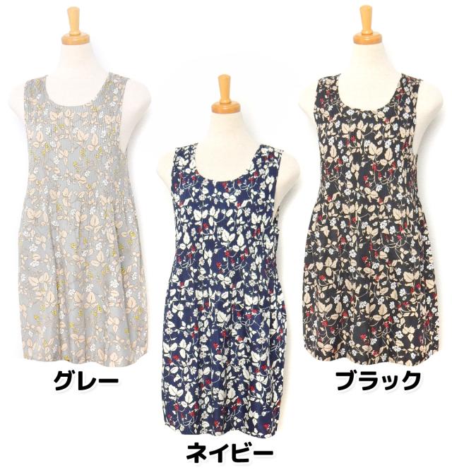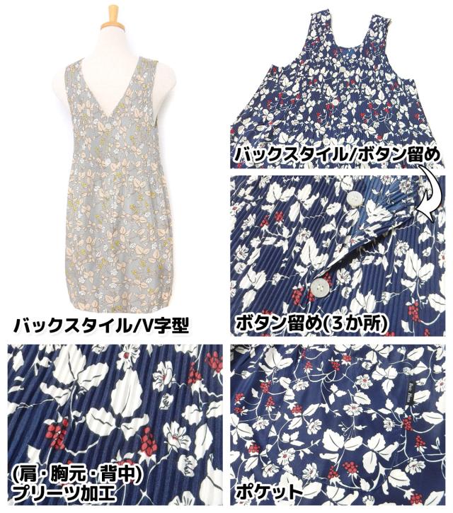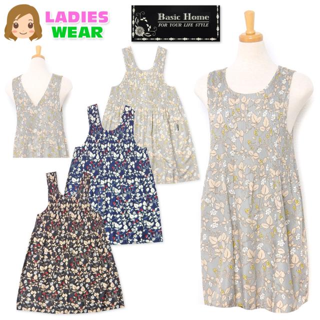 【送料無料】婦人 レディース マイクロピーチ エプロン プリーツ加工 花柄 後ろボタン留め ポケット付き 軽量 sl-0471【メール便対応】