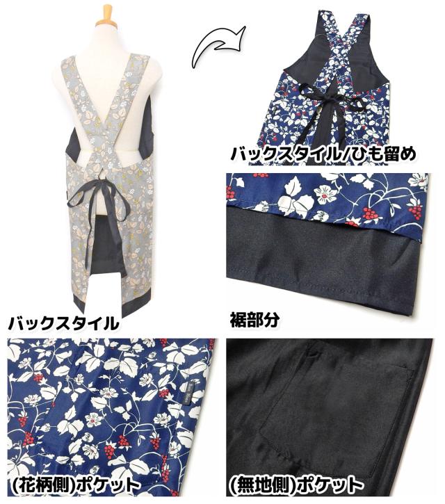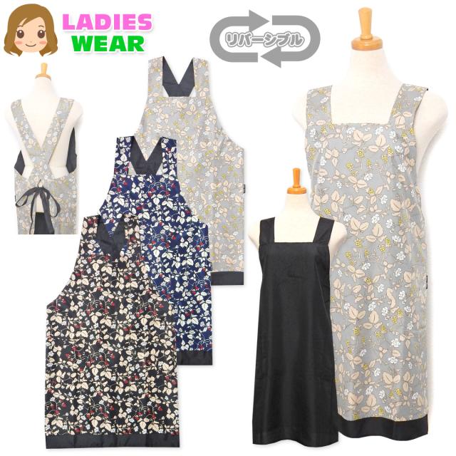 【送料無料】婦人 レディース リバーシブル エプロン マイクロピーチ素材 後ろクロスひも留め 花柄 無地 ポケット付き sl-0476【メール便対応】