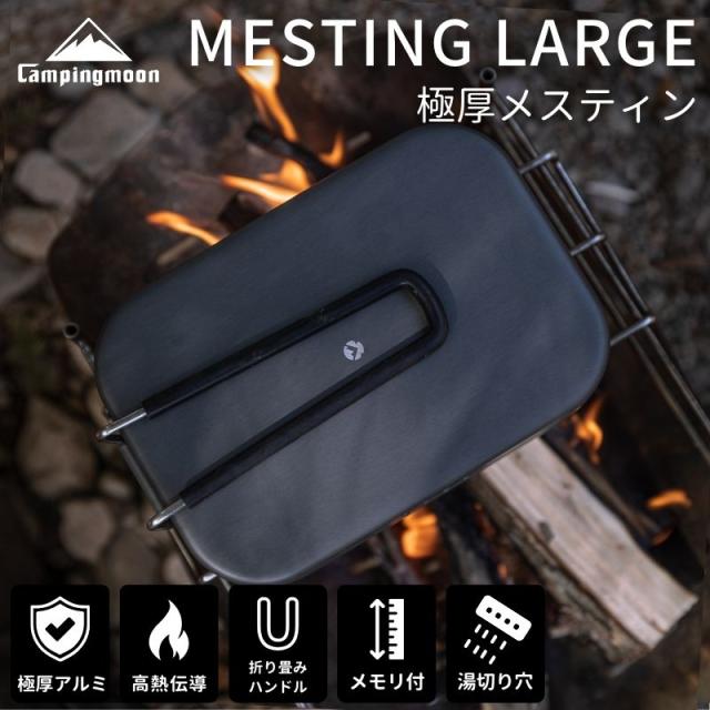 キャンピングムーン(CAMPING MOON) 極厚 メスティン 2合 ラージ 吹きこぼれ防止溝 湯切り穴 付き アウトドア 極厚メスティン 飯盒 キャンプ 防災 黒ギア H-2013