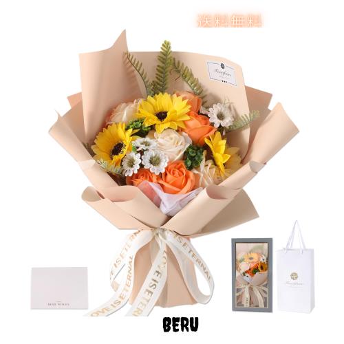 ◆商品名:Fiorifiore ソープフラワー 誕生日プレゼント 花 母の日 父の日 敬老の日 ひまわり ひな菊 バラ 女性 人気 花束 退職 造花 送別 インテリ