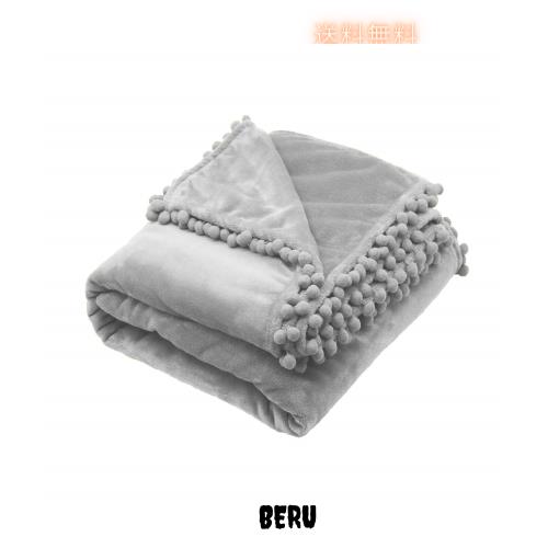 Mokoya 毛布 セミダブル 可愛い ブランケット 150x200cm かわいいポンポン付き ふわふわ柔らかい 多用途 タオルケット 軽量 洗える 通年