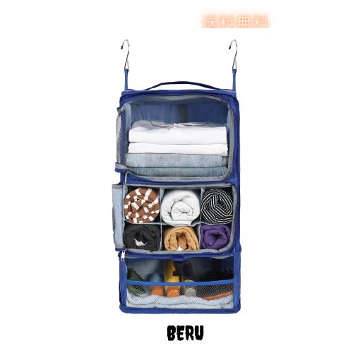 ◆商品名:Surblue 収納ボックス 吊り下げ 3段 折りたたみ式 大容量 持ち運べるクローゼット 旅行 出張 省スペース、2つのフック付き ブルー