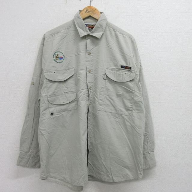 古着 長袖 フィッシング シャツ メンズ 00年代 00s ムースレイク カヌー 大きいサイズ コットン ベージュ カーキ 内側メッシュ 中古 古着
