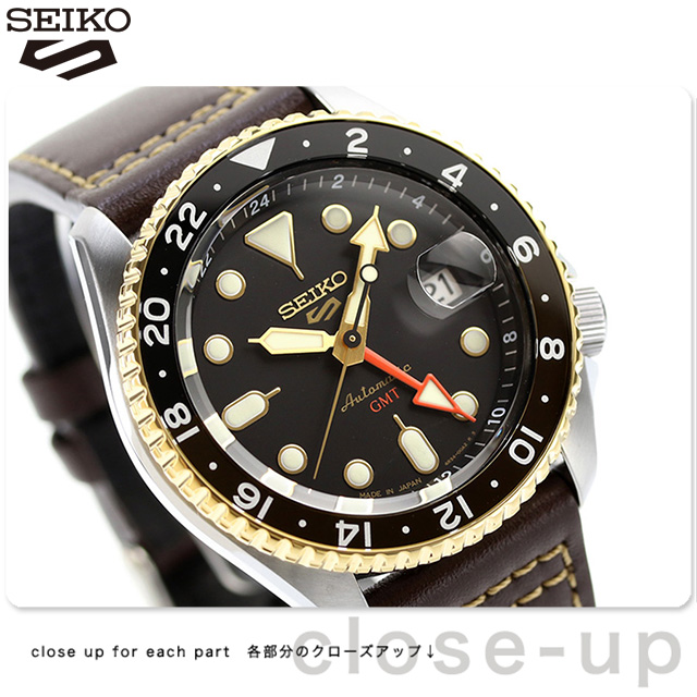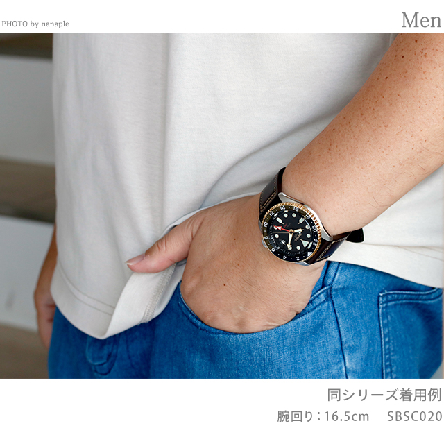 正規品 7年保証キャンペーン 送料無料 セイコー5 スポーツ 日本製 メンズ 腕時計 SBSC020 Seiko 5 Sports SKX Series GMT アナログ ブラック ブラウン 黒 ◆国内外ともに人気のSKX GMTシリーズに、待望のニューカラーが登場。SKX GMTの第一弾は、通称「ブラックボーイ」「ネイビーボーイ」「オレンジボーイ(海外限定)」とファンの間で呼ばれているアーカイブカラーを投入したモデルに対し、第二弾はSKXシリーズで人気のカラーリングにアレンジ。昨今若者の間でトレンドのラギットファッションでも多様されているヴィンテージアイテムとコーディネートしやすいように、ブラウンのレザーストラップと金色のベゼル・インデックスの組み合わせで表現。厚みのある両面カーフ(スムース)の素材に、ワーク系のブーツやレザーのブルゾンを彷彿とさせるステッチが入っており、質感高く仕上げています。 発売日:2024年9月発売 機械式腕時計
