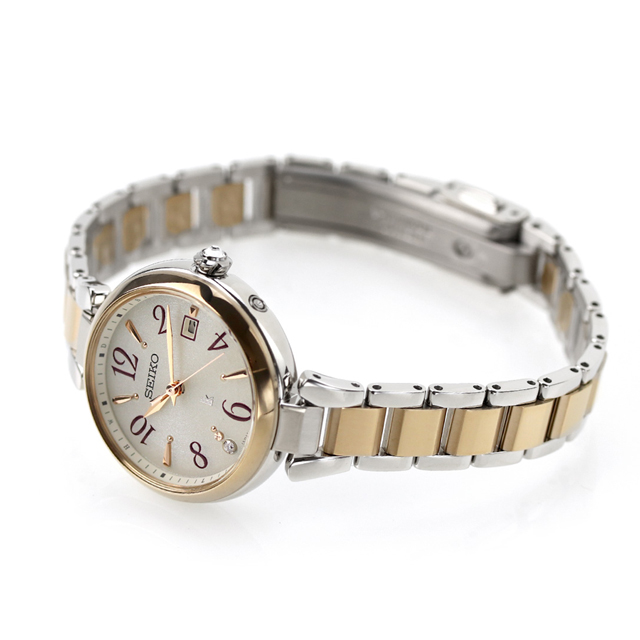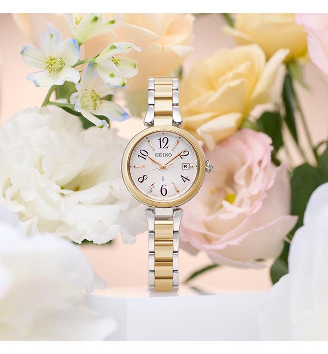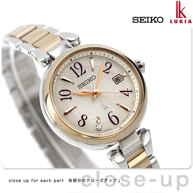 9月07日発売予定 予約受付中 正規品 7年保証キャンペーン 送料無料 セイコー ルキア ピオニーホワイト チタン ラボグロウンダイヤモンド 日本製 レディース 腕時計 SSQW086 SEIKO LUKIA Grow 2024 AW Recommend Color PEONY WHITE アナログ オフホワイト シャンパンゴールド 白 ◆「LUKIA Grow」のピオニー(芍薬)をモチーフにしたデザインから、モデル全体がシルクのように柔らかなカラーリングの「PEONY WHITE(ピオニーホワイト)」モデルが登場。アラビアフォントは、大人っぽい縦長シルエットとかわいい丸みをバランスよく融合させたオリジナルフォントで、ルキアならではの可愛さと見やすさを兼ね備えています。ケースデザインは、丸みのあるフォルムにカーブガラスを採用し、柔らかなピオニーを表現しました。デザインポイントは、”Drop Dial(ドロップダイヤル)”。中心に向かってほんのりと膨らむ球面形状が特徴。芍薬がみずみずしく花開くときの、花びらにのったしずくを表現しています。 発売日:2024年9月発売