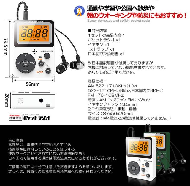 商品内容:ポケットラジオ x1イヤホン x1 ストラップ x1日本語取扱説明書 x1