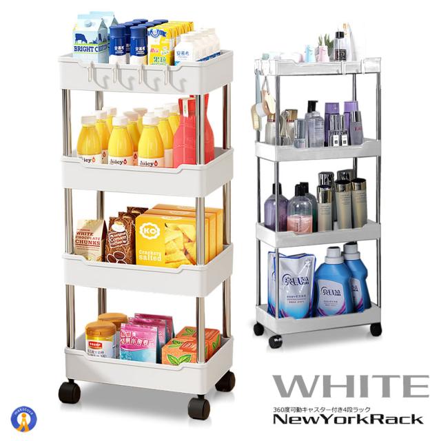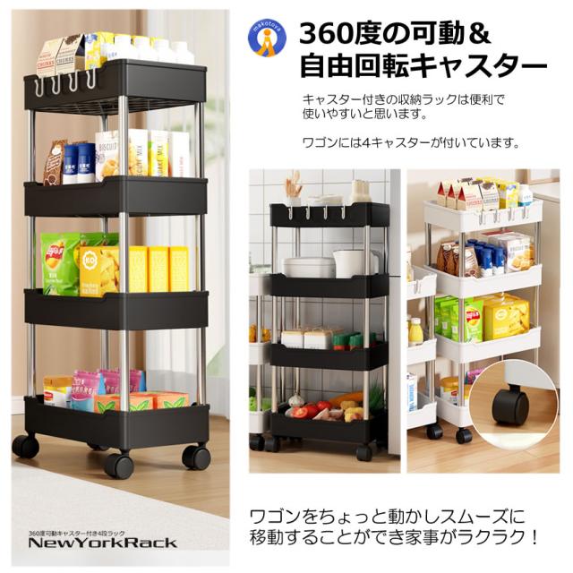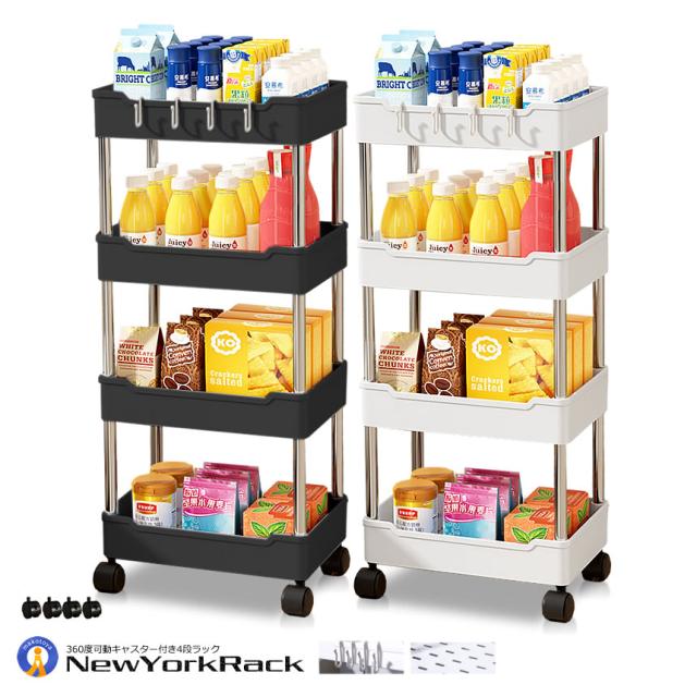 キッチンワゴン 4段 収納ラック オープンシェルフ 隙間収納棚 スリム キャスター付き すきま FOURDAN s-kk2403-31a