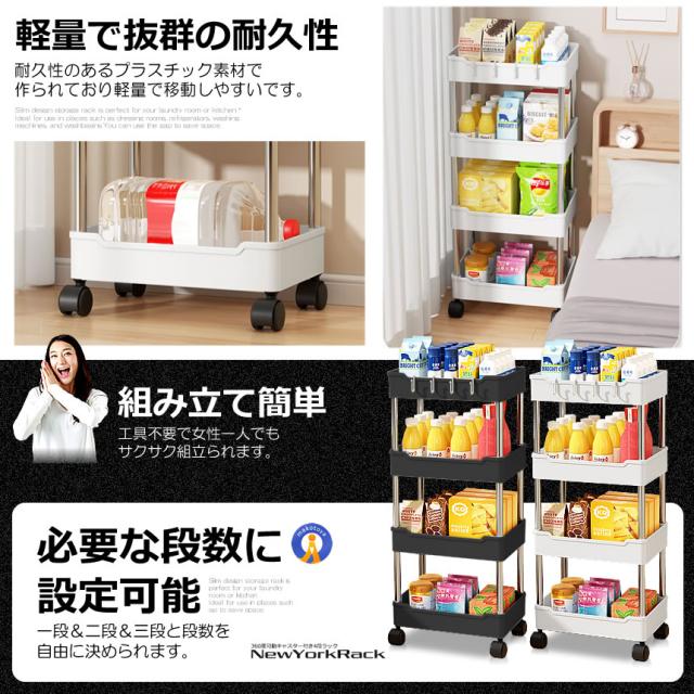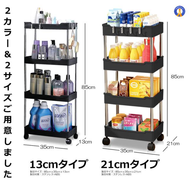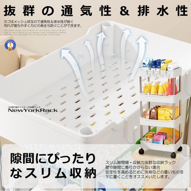 細身設計の収納ラックは部屋やキッチンたランドリー