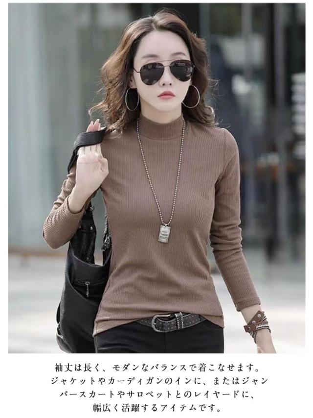長袖tシャツ モックネック ロンt リブ生地 ストレッチ 長袖 tシャツ カットソー ハイネック スリム 細身 ロングtシャツ 春 秋 冬 レディース インナー tシャツ 綿100% ナチュラル 秋服 秋物 30代 40代 50代 60代 大人 カジュアル 大きいサイズ 無地 シンプル 【送無】