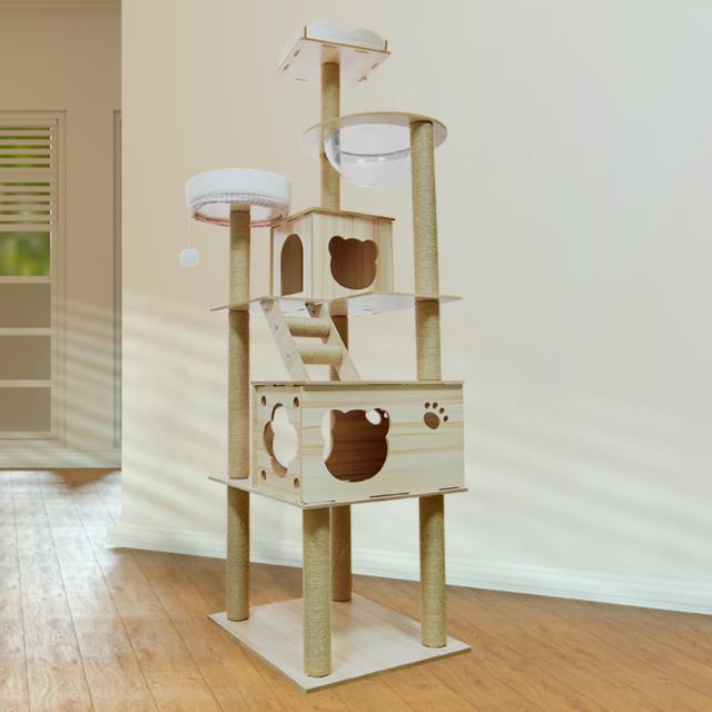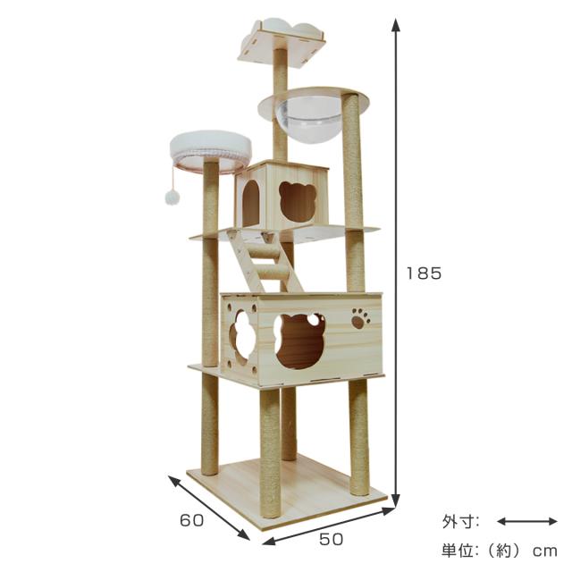 キャットタワー ねこぞく ポルカ 木製 据え置き ( キャットツリー 猫タワー 185cm 爪とぎ キャットハウス おしゃれ インテリア 猫 ねこ 猫用品 運動不足 ストレス解消 キャットウォーク ペット用品 )