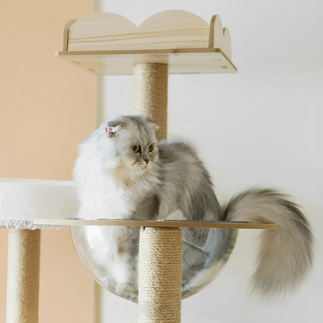 モフモフなバスケットと落下防止の柵が付いた2つの見晴らし台は、高いところが大好きなネコちゃんのうっ憤を解消し、健康的な暮らしをサポートします。