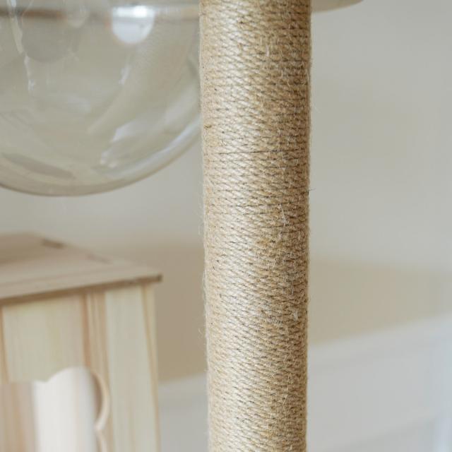 直径80mmの柱に細目の天然麻ひもをみっしりと巻いています。ネコちゃんの爪とぎはもちろん、天然麻と木材の香りがともにナチュラルな空間を演出します。