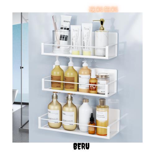 Bullthree 浴室用ラック シャワーラック お風呂 ラック バスルームラック 収納棚ラック マグネットラック 吸着式壁掛け 水切り 穴あけ不要 錆びにくい 浴室とキッチンの収納ラック ステンレス ホワイト 3段式