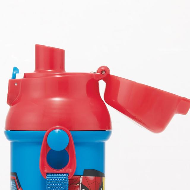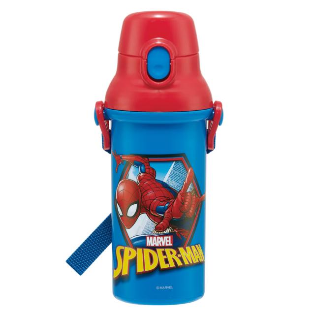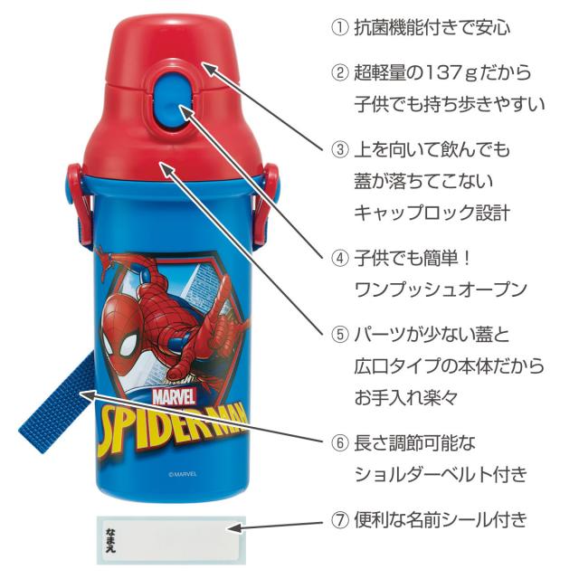 水筒 480ml 抗菌直飲プラボトル スパイダーマン25 ( スパイダーマン 子供用 抗菌 プラスチック製 ダイレクトボトル 直飲み ワンタッチ 日本製 抗菌加工 AG 銀 ショルダーベルト付き 広口 軽量 ボトル ワンプッシュ )