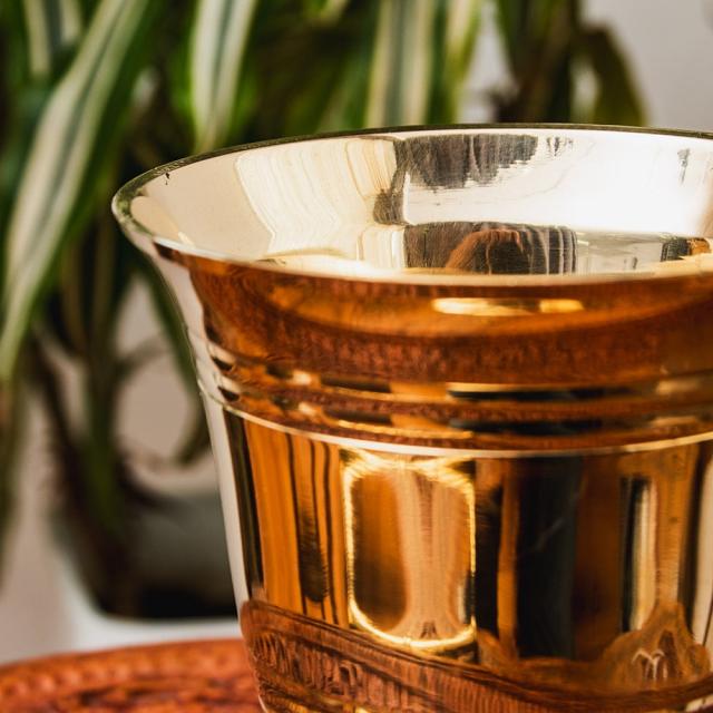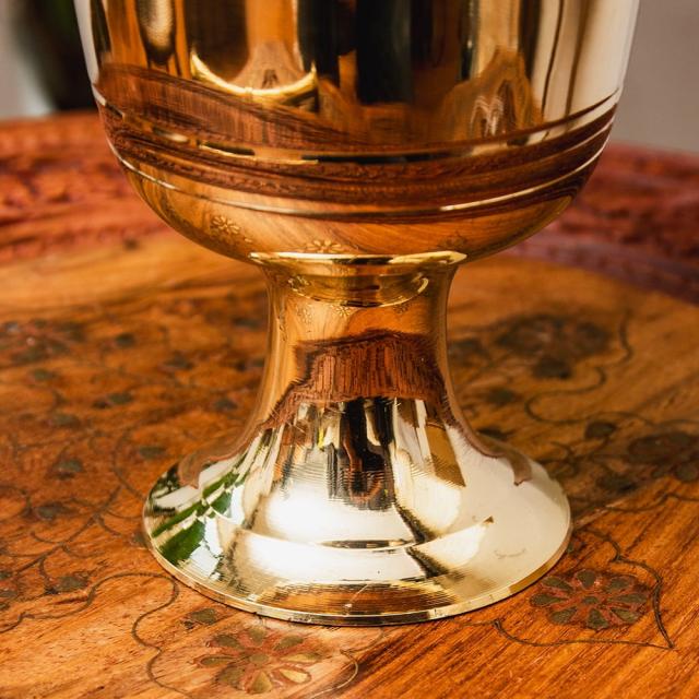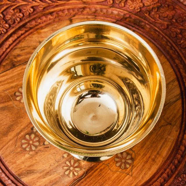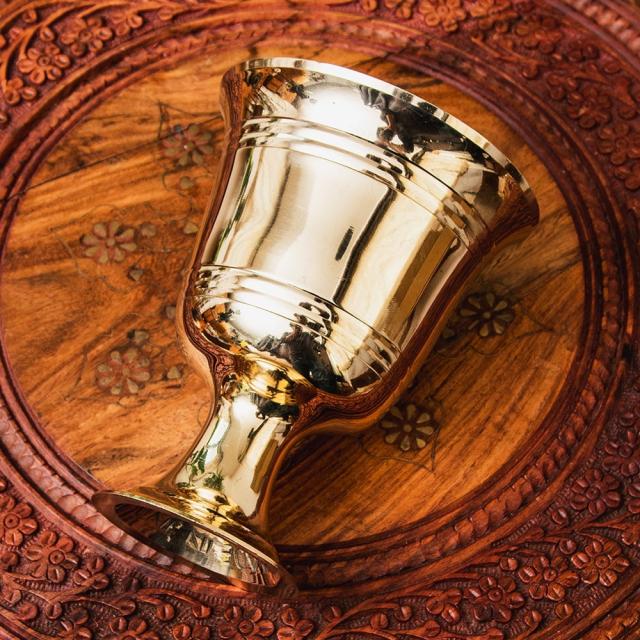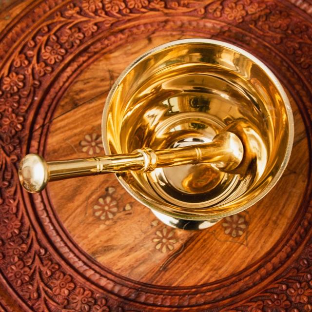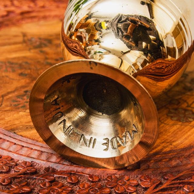 オーセンティックでエレガントな真鍮のスパイスグラインダー 高さ:約16cm / すり鉢、スパイス、グラインダー、グラインダー、カレー、すりつぶす、スパイスミル、乳鉢、インドカレー インド アジアの食材 【インドとアジアン食品・食材
