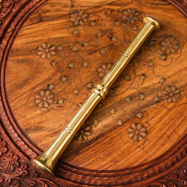 インド・デリーから届いたエレガントな真鍮製のスパイスグラインダーです。マハラジャの邸宅にありそうなグラマラスな造形が素晴らしいですね。単なる調理器具の域を越えて、飾るだけでも空間がキリリと引き締まる素敵な一品です。お値段は決して安くありませんがスパイス料理・マサラ料理を愛好する人ならぜひ身の回りに置いておきたいアイテムですね。■スパイスを自分でパウダーに!