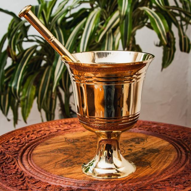 【送料無料】 オーセンティックでエレガントな真鍮のスパイスグラインダー 高さ:約16cm / すり鉢 カレー すりつぶす インド 調理器具 食器 アジアン食品 エスニック食材