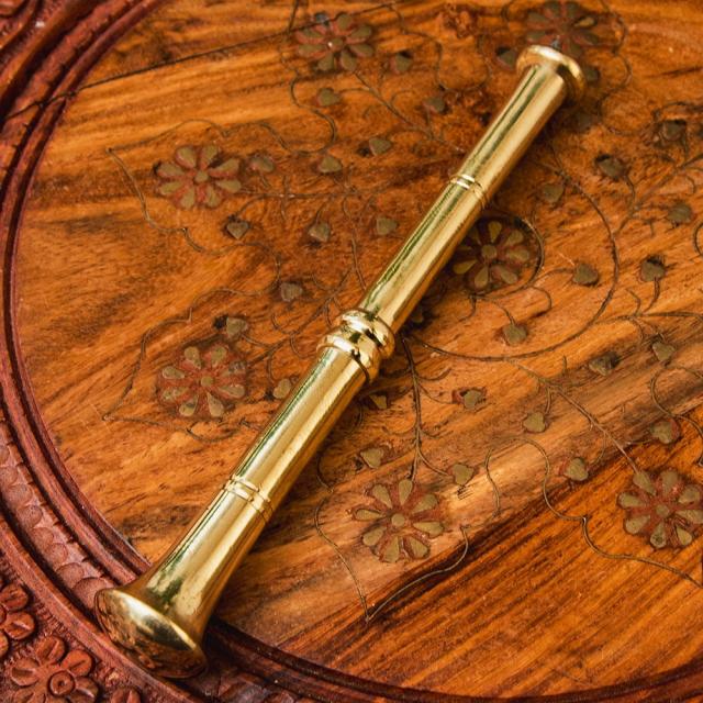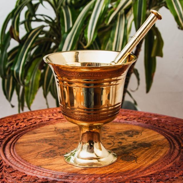 オーセンティックでエレガントな真鍮のスパイスグラインダー 高さ:約14cm / すり鉢、スパイス、グラインダー、グラインダー、カレー、すりつぶす、スパイスミル、乳鉢、インドカレー インド アジアの食材 【インドとアジアン食品・食材