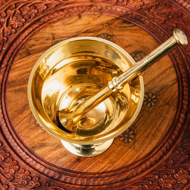 【送料無料】 オーセンティックでエレガントな真鍮のスパイスグラインダー 高さ:約14cm / すり鉢 カレー すりつぶす インド 調理器具 食器 アジアン食品 エスニック食材