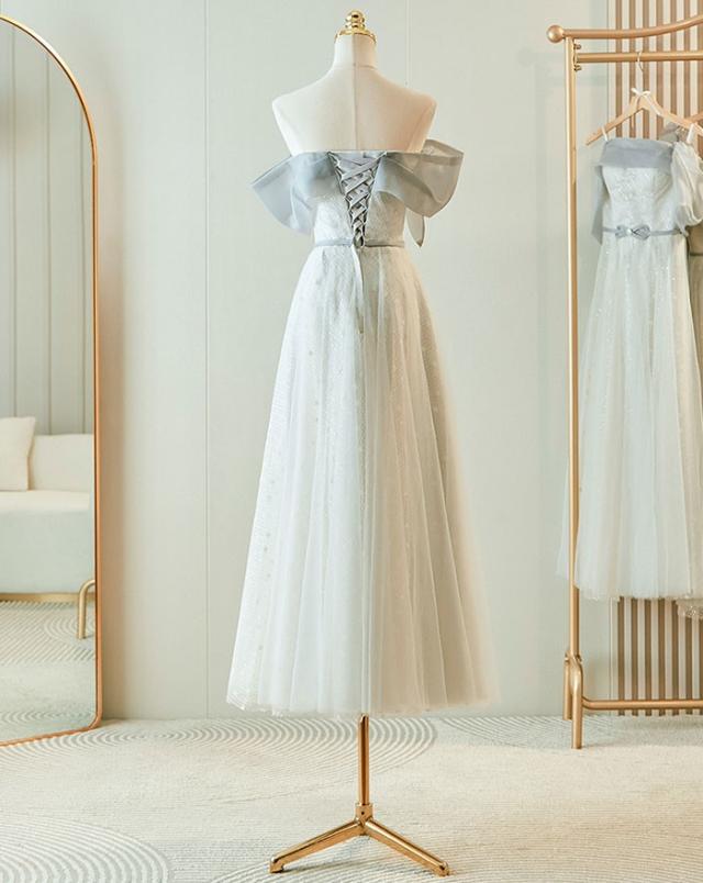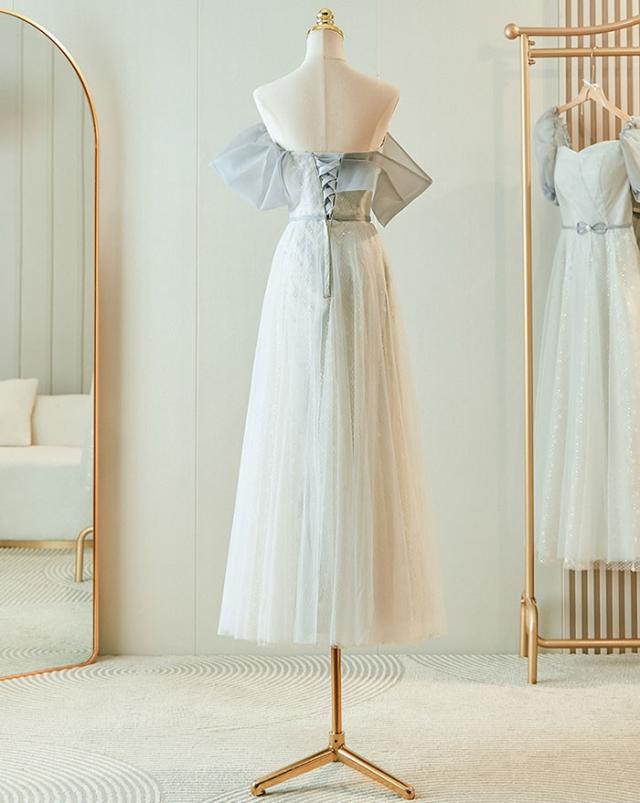 ブライズメイドドレス 大人 袖付き ワンピース 半袖 ドレス ピアノ 発表会 オフショルダー ロングドレス ミモレ丈 大きいサイズ dk029n1cyxq