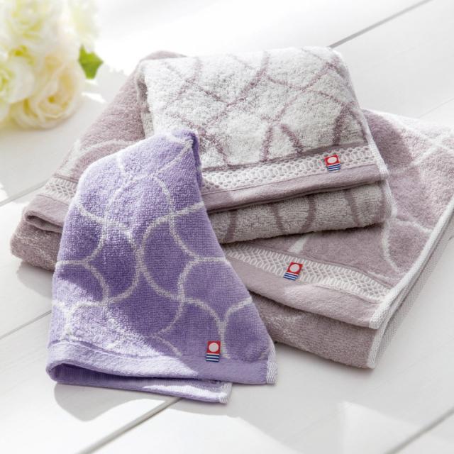 落ち着いた色合いでモダンなデザインのタオルです。タオルの名産地・今治で織り上げたタオルは使いはじめから吸水性が良くふんわりした風合いが長続きします。