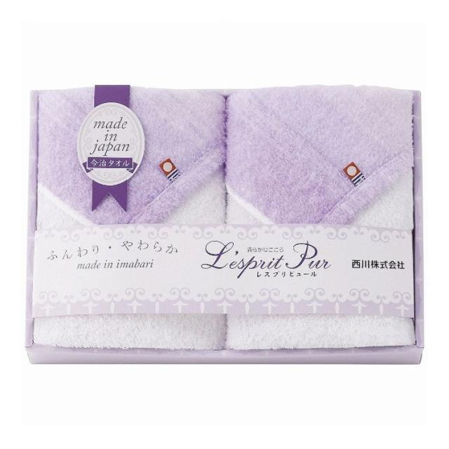 フランス語で『清らかなこころ』を意味する、レスプリピュール。純真な想いからくる清らかな心のイメージを清楚なパープルのグラデーションカラーを使って、ふんわりとやわらかなタオルギフトにしました。日本のタオルの産地「今治」で丁寧に織り上げられた吸水性の高いタオルです。