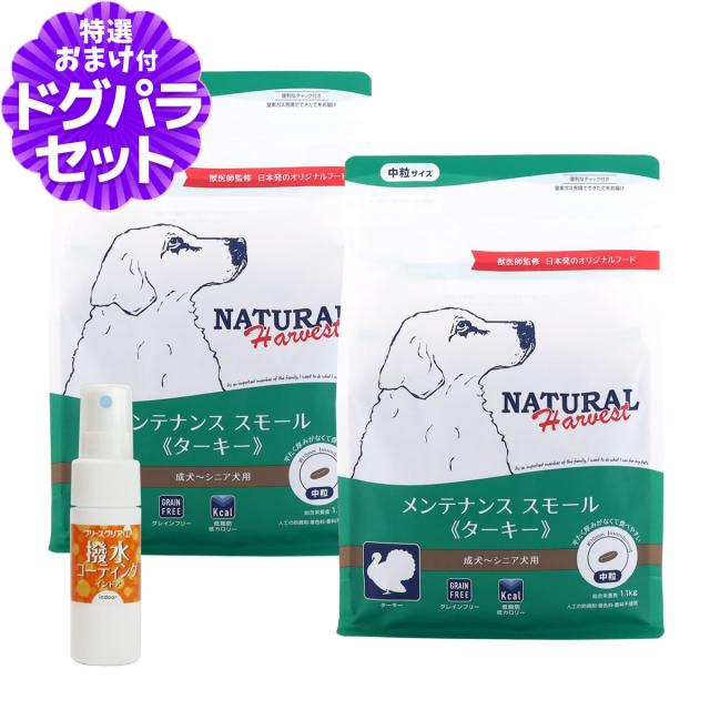 【順次パッケージ変更】【沖縄以外送料無料】ナチュラルハーベスト メンテナンススモール ターキー 1.1kg×2袋+撥水コーティングインドア(水回り用) 20ml