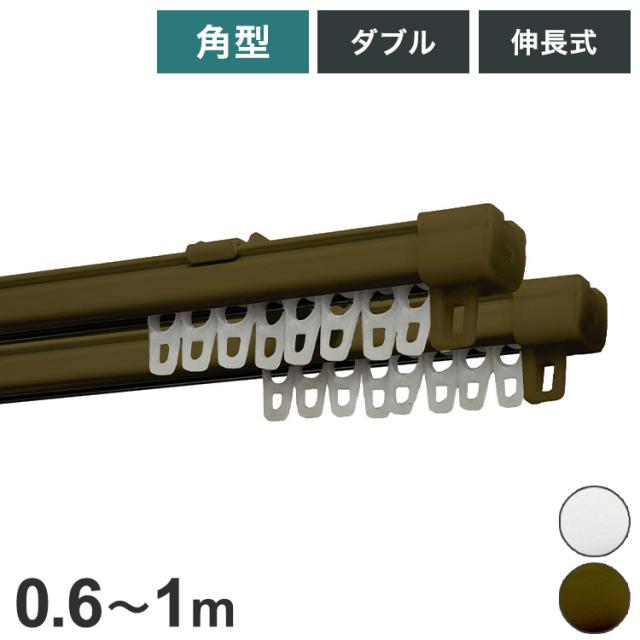 角型伸縮カーテンレール エコミック 0.6~1m ダブル カーテンレール 幅1m 伸縮 スチール製 天井付け 正面付け 取付簡単 伸長式 窓回り 賃貸 一人暮らし 新生活(代引不可)【送料無料】
