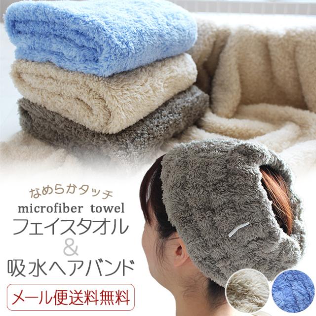 【メール便送料無料】マイクロファイバーフェイスタオル& ヘアバンド セット なめらかリッチ 吸水ヘアバンド ヘアターバン フェイスタオル マイクロファイバー 超極細繊維 まとめ買い ギフト 速乾 吸水 ヘアケア 毛羽落ちしない