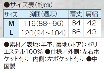●素材/表地:羊革、裏地(ボア):ポリエステル100%