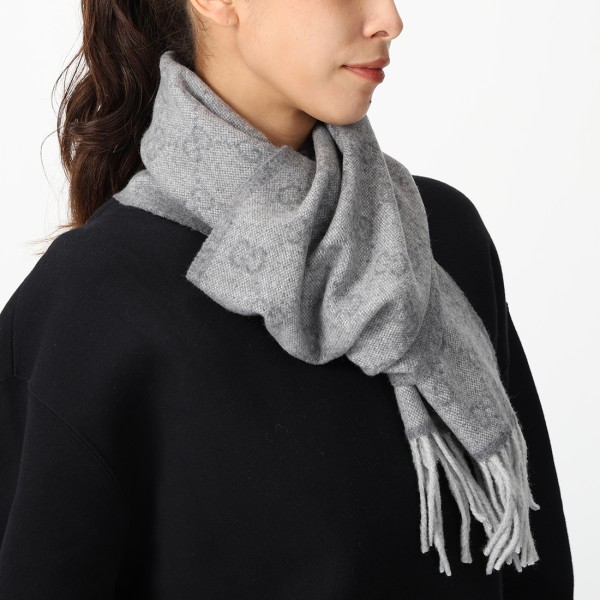 GUCCI(グッチ)のマフラーが入荷しました☆グッチを象徴するGGパターンに配色のラインがおしゃれなデザイン。柔らかく暖かみのある素材で、首まわりを優しく包み込みます。カジュアルからスーツスタイルまでさまざまな装いにマッチ。贈り物としても喜ばれるアイテムです。