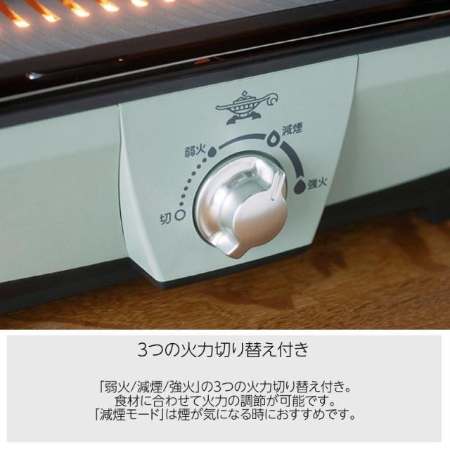 ●「弱火/減煙/強火」の3つの火力切り替え付きです。「減煙モード」は煙が気になる時におすすめです。