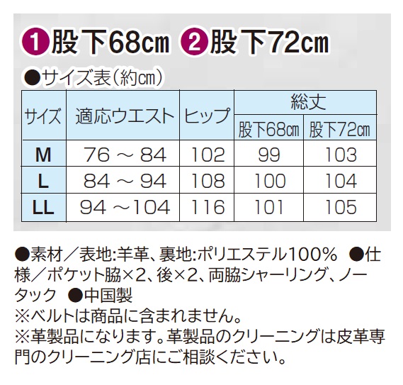 ●選べる股下丈/約 股下68cm、股下72cm