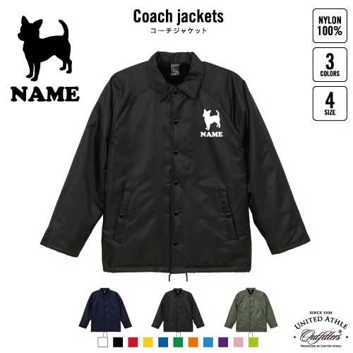 チワワ2/犬種別ドッグシルエット 名入れボア裏地付きコーチジャケット 左胸ワンポイントミリタリー アメカジ ブラック ネイビー カーキ ストリート ブルゾン アウター