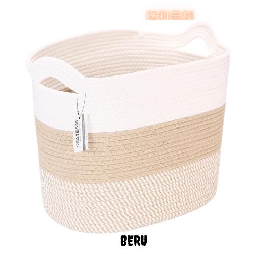 Sea Team 大きいサイズ 収納バスケット 収納かご 洗濯かご ランドリーバスケット ロープバスケット コットンロープバスケット 持ち手付き