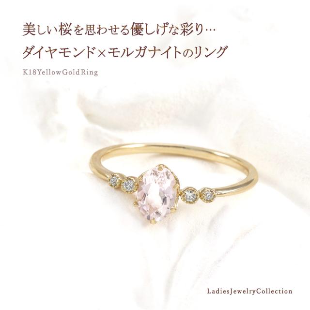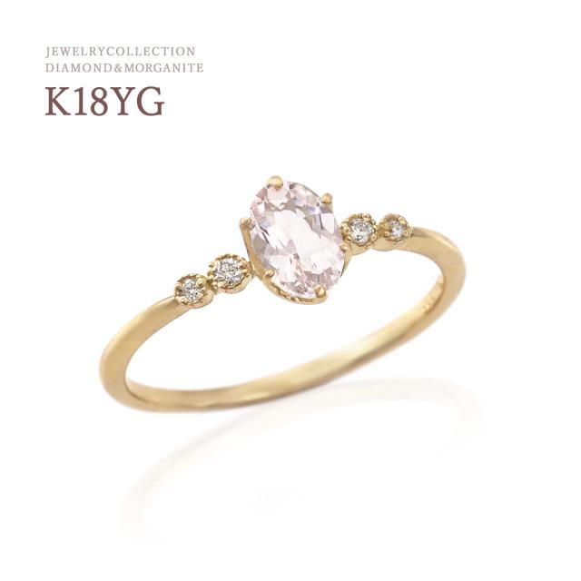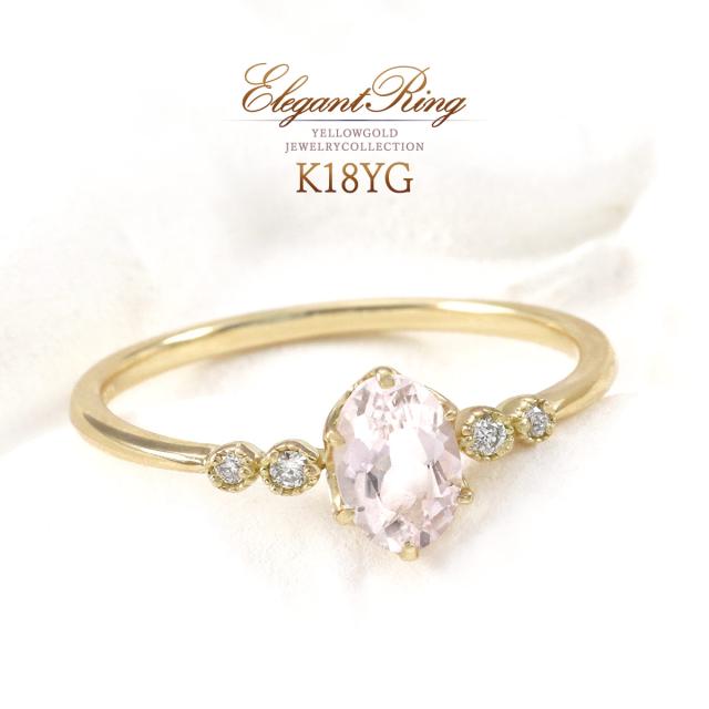 指輪 18金 モルガナイト ダイヤモンド レディース 18K イエローゴールド K18 リング 9号 11号 13号 おしゃれ 大人 かわいい 天然石 アクセサリー プレゼント 誕生日 記念日 宝石 18金リング ピンク色 可愛い モルガナイトリング 4月 誕生石 本物 彼女 嫁 母の日 ギフト 2026