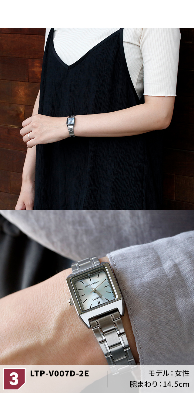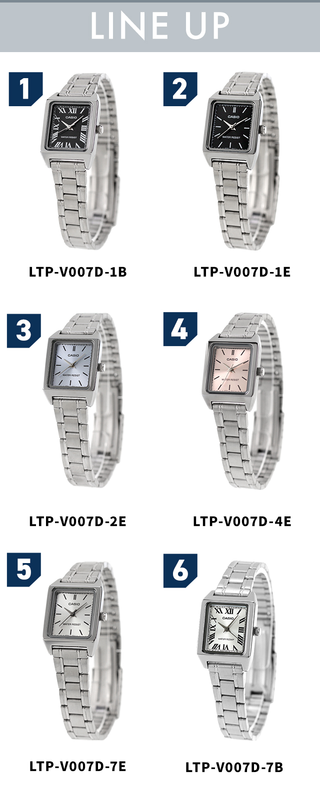 7年保証キャンペーン カシオ CASIO スタンダード チプカシ クオーツ 海外モデル レディース 腕時計 LTP-V007D STANDARD アナログ ブラック アイスブルー ピンク シルバー 選べるモデル ◆カシオLTP-V007は、クラシカルな角型フェイスで、文字盤にも落ち着きが感じられるデザインです。ドルフィン針という菱形の針が採用されており、クラシカルさをより一層引き立てています。シンプルなデザインで、シーン問わずお使いいただけ、プレゼントにもおすすめです。 LTP-V007D-1BDF LTP-V007D-1EDF LTP-V007D-2EDF LTP-V007D-4EDF LTP-V007D-7EDF 日本未発売モデル